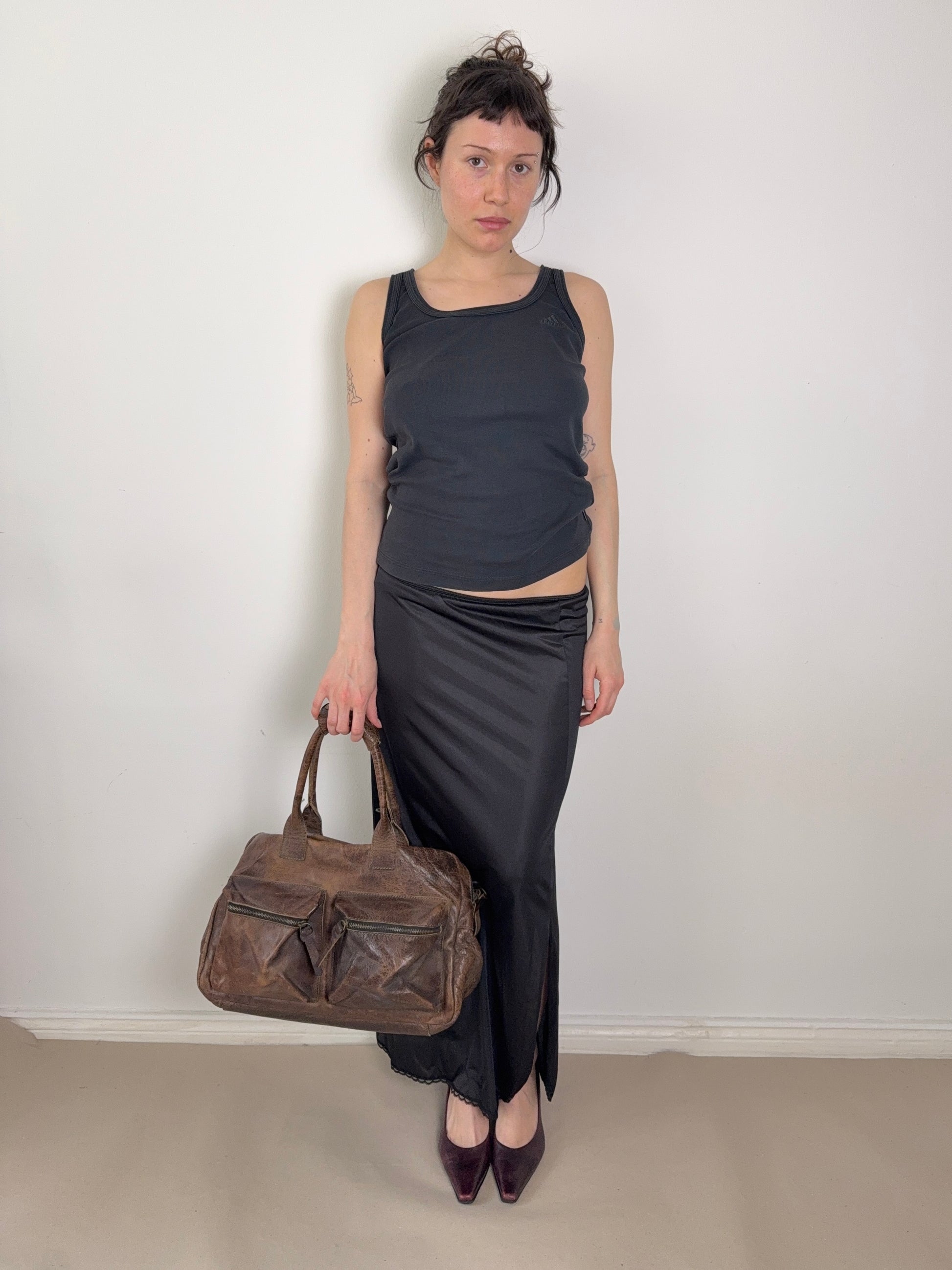 Vintage Adidas tank top in a washed black tone with subtle black Adidas logo stitching on the chest. Made from a thicker cotton material