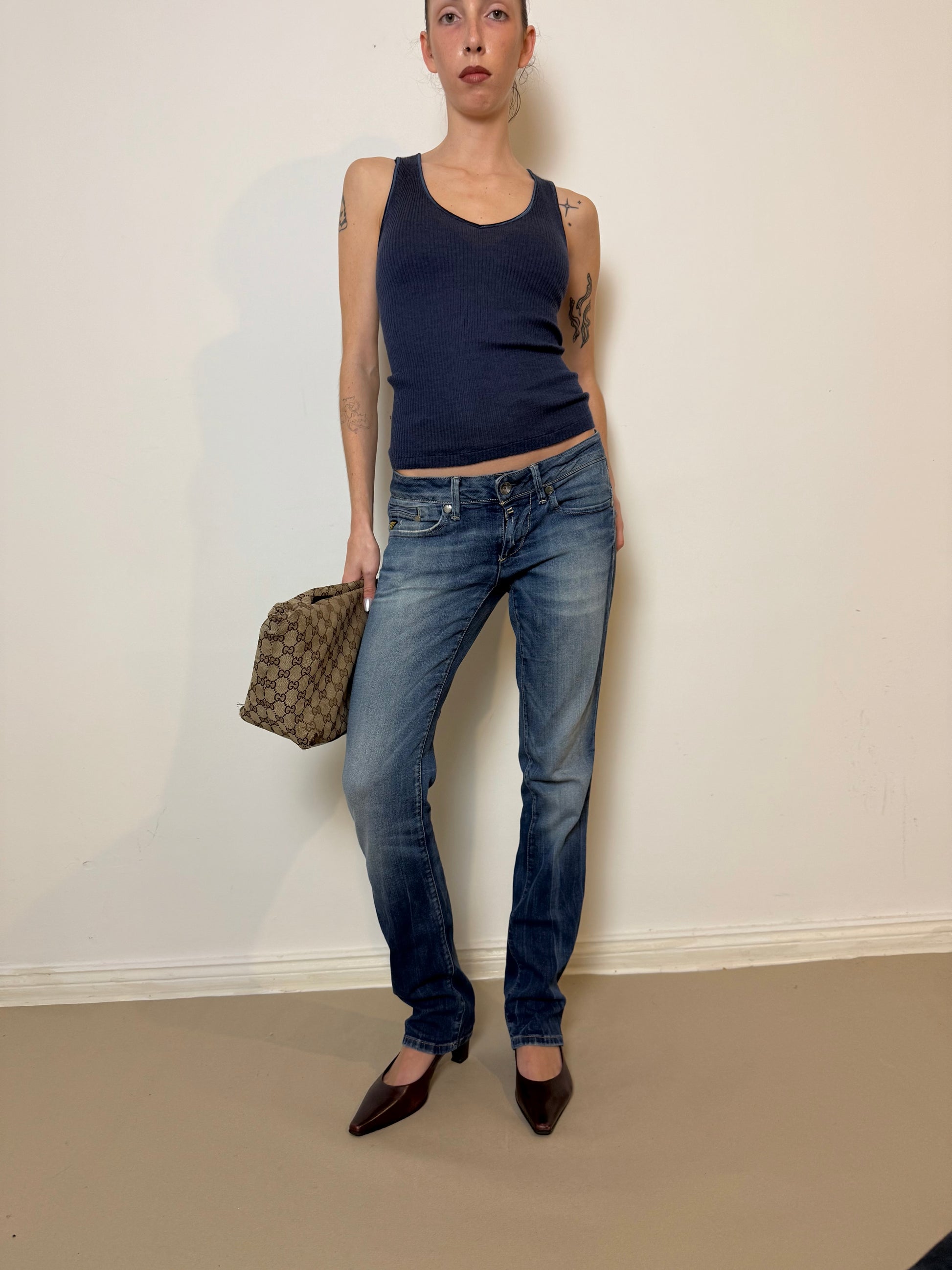 • jeans: tag says W29 lL32, low rise fit
